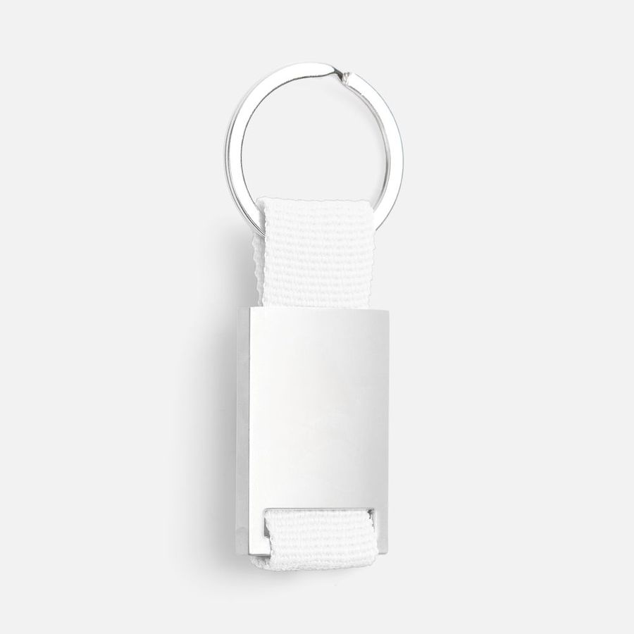 Минималистичный металлический брелок с тканевой вставкой. Материал: металл, ткань Размеры: 2,7x6,2x0,6 см; диаметр кольца 3,2 см; упаковка: 4,5x10x1,2 см