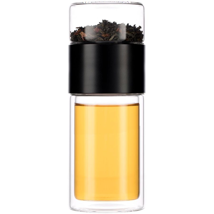 Удобная бутылка небольшого объема Cultivar пригодится для заваривания чая, кофе или трав горячим или холодным способом. Благодаря конструкции с двумя отсеками, разделенными сетчатым фильтром, можно остановить процесс заваривания в любой момент — просто перевернув бутылку. Так настой не получится слишком крепким, а чайный лист получится залить кипятком еще несколько раз, имитируя традиционный способ заваривания проливами. Объема получившегося напитка как раз хватит на стандартную офисную кружку (около 300 мл). В отсек для заваривания можно положить также свежие ягоды, фрукты или мяту — и наслаждаться прохладительным вкусным напитком без каких-либо помех. Двойные стенки не дадут обжечься, если содержимое бутылки окажется слишком горячим, а также помогут дольше сохранить температуру напитка. Материал: боросиликатное стекло Размеры: диаметр 6,7 см; высота 17,8 см; упаковка: 7,5x7,5x19,5 см