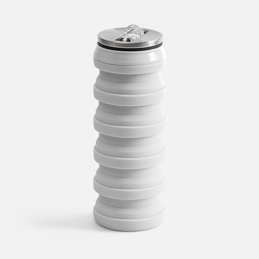 Складная бутылка для воды Folla привлекает внимание своим необычным внешним видом и функциональностью. По форме она больше всего напоминает классическую алюминиевую банку для напитков. При этом ее высоту можно легко увеличить с 10 до 20 см. В сложенном виде бутылка поместится даже в небольшую сумочку, а полный полезный объем составляет целых 480 мл. Подходит для горячих и холодных напитков. Материал: полистирол, полиэстер, сталь, силикон Размеры: бутылка: 7x7x10/20 см; мешочек: 17,5х12,5 см