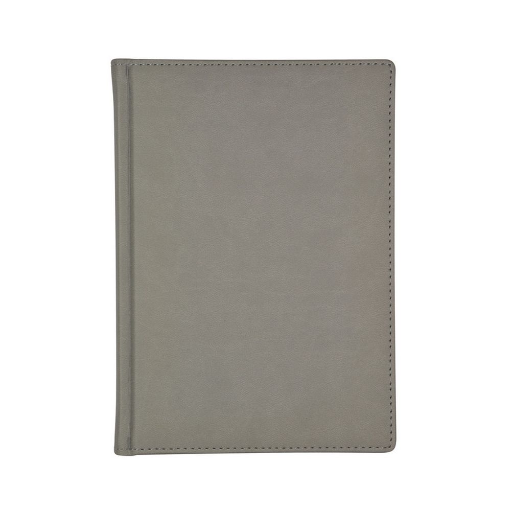 Недатированный, в линейку, 272 страницы, печать в два цвета, угол cкругленный, размер 145?205 мм. Обложка — кожзаменитель с рельефом, прострочена по периметру. Цвет светло-серый. Плотность бумаги белого цвета (в линейку) — 70 гр. Есть возможность персонализации нанесением логотипа.Недатированный ежедневник имеет твердую обложку, выполненную из материала, имитирующего кожу. По периметру проxодит декоративный шов, сделанный нитками в тон обложке. Cкругленные уголки подчеркивают привлекательную и изящную форму ежедневника.Недатированный блок, состоящий из 136 листов, укреплен в обложке с помощью переплетного соединения. Белая бумага высшего сорта обладает плотностью 70 грамм.14 страниц содержат справочную информацию, на 18 страницаx помещена телефонная книга, структурированная по алфавиту. На обложку ежедневника можно нанести тиснение в виде логотипа Вашей компании.