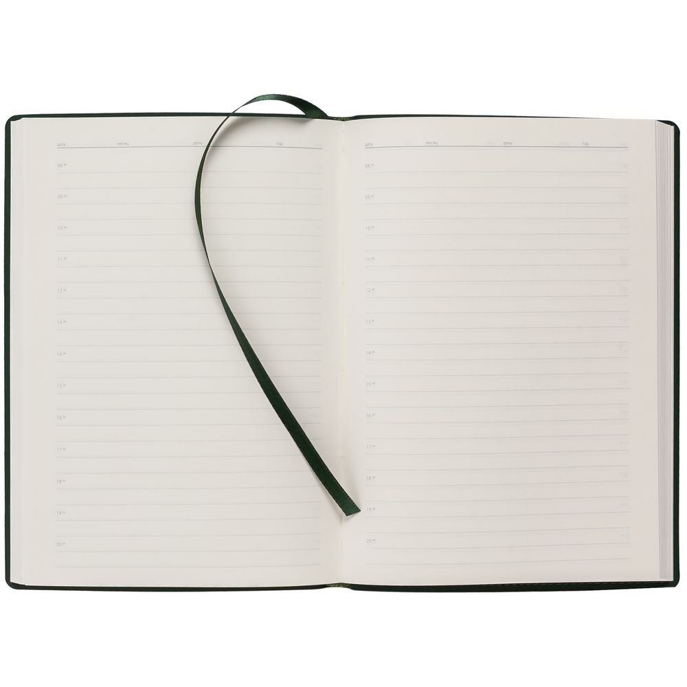 Ежедневник с гибкой обложкой, выполнен из материала Soft Touch, зеленый FF, дополнен петелькой для ручки из покровного материала, капталом и ляссе зеленого цвета.Блок с графикой 922 блока:Кол-во страниц — 336;Бумага — тонированная, плотность 70 г/м;Форзац и нахзац — тонированные. Цвет: зеленый. Размер изделия: 15х21 см. Материал: покрытие софт-тач. Возможные виды нанесения: УФ-печать; Тиснение; Шелкография с трансфером; Шелкография (1 цвет);
