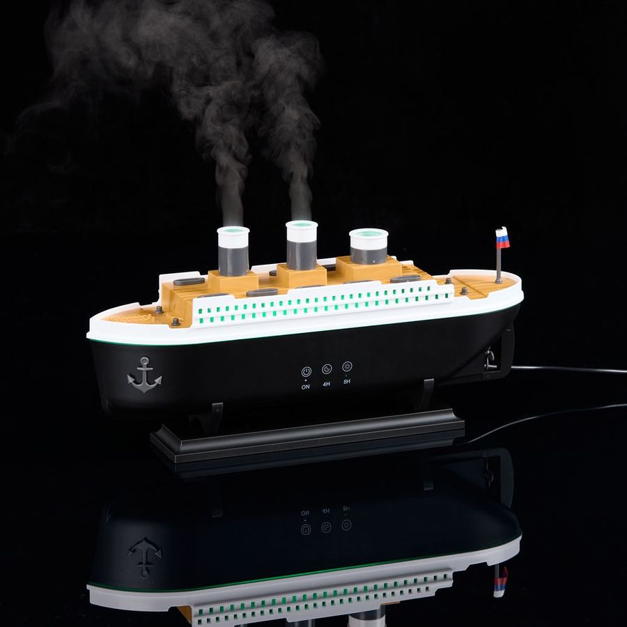Увлажнитель создаст комфортный микроклимат и неповторимую атмосферу в помещении, а также позволит деликатно ароматизировать воздух. Добавьте ароматический раствор на водной основе или несколько капель эфирного масла, чтобы дополнительно расслабиться перед сном или лучше сконцентрироваться в течение рабочего дня. Отличительная черта модели Steam Stream — эффектный дизайн в виде парохода. Благодаря оптическому эффекту влага вырывается из труб на палубе, словно дым, — создается умиротворяющее и завораживающее зрелище. Материал: пластик Размеры: 30x7,1x14,1 см; упаковка: 30,7x7,5x15,2 см