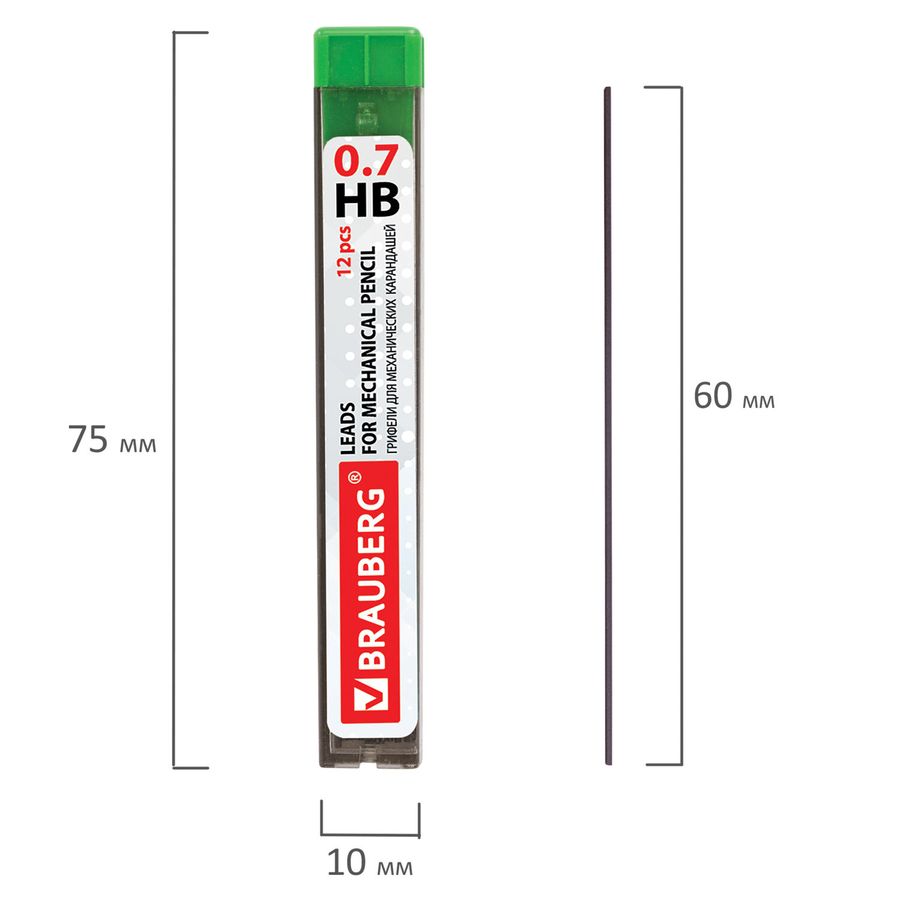 Грифели запасные 0,7 мм, HB, BRAUBERG, КОМПЛЕКТ 12 шт., "Hi-Polymer"