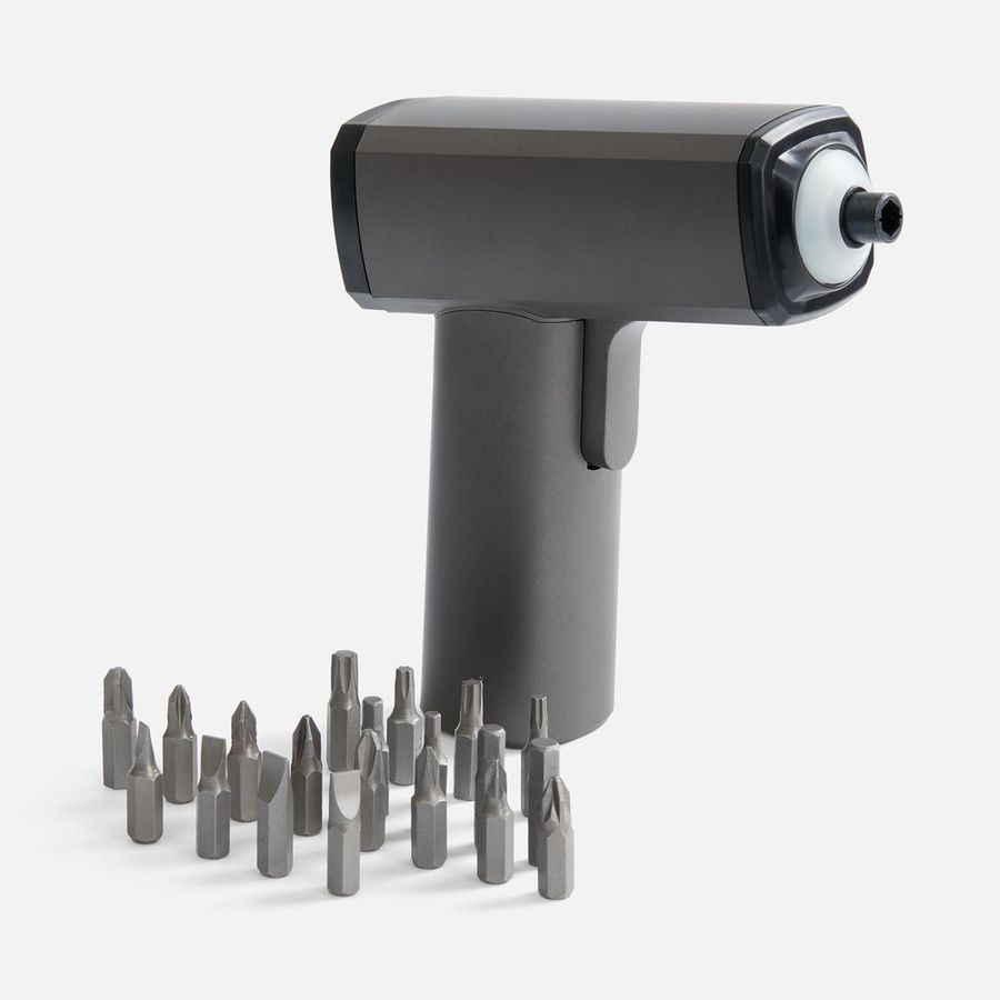 Отвертка Propeller — ваш незаменимый помощник в доме. Cтильная и эргономичная, она идеально подходит для мелкого ремонта, сборки мебели, крепления полок и других бытовых задач. Ее удобно держать в руке: она легкая, но при этом достаточно мощная, чтобы справляться с повседневными задачами без усилий. Отвертка оснащена LED-подсветкой, что особенно удобно при работе в плохо освещенных местах, например, под столом или в углу шкафа. Комплект включает все необходимое: набор из 20 насадок под разные типы винтов, удлинитель и аккуратный кейс для хранения: все можно хранить в идеальном порядке и всегда иметь под рукой. Материал: АБС-пластик, металл, полипропилен Размеры: 12,4х14х4,2 см, кейс: 19х15,6х4,9 см; коробка: 21x16x5,5 см