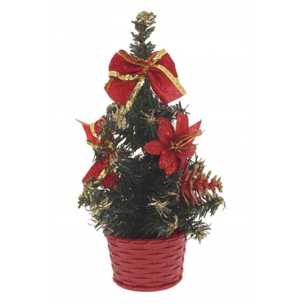 Елка новогодняя Remeco Collection настольная 20 см с декором (237274). Искусственная елка новогодняя настольная с украшениями из текстильных и полимерных материалов красного цвета (банты, цветы) и натуральной шишкой не имеет ствола. Хвоя из ПВХ зеленого цвета с золотистыми кончиками накручена на металлическую спираль. Подставка — корзина из пластика. Высота 20 см. Упаковка — пакет.