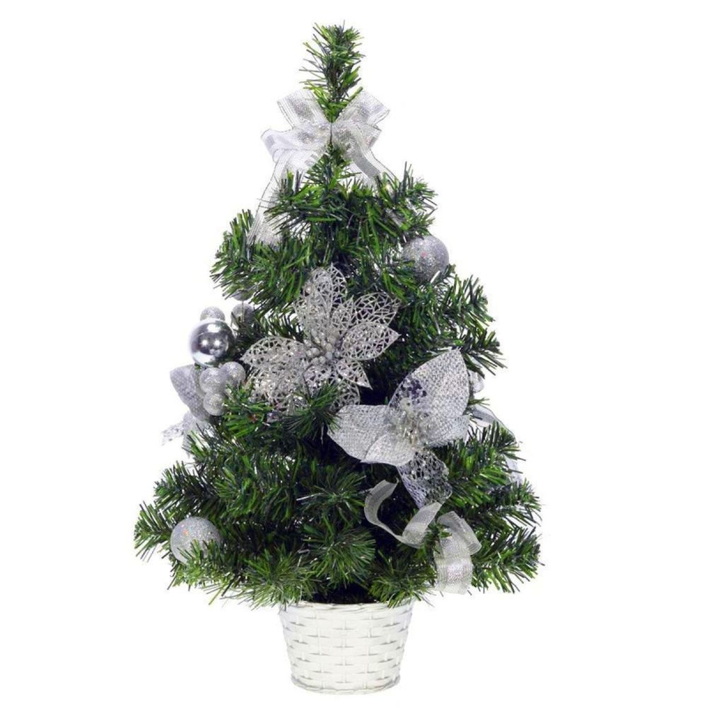 Елка новогодняя Remeco Collection настольная 51 см с декором. Искусственная елка новогодняя настольная с декором из текстильных и полимерных материалов белого цвета не имеет ствола. Хвоя из ПВХ зеленого цвета накручена на металлическую спираль. Подставка — корзина из пластика. Высота 51 см. Упаковка — пакет.