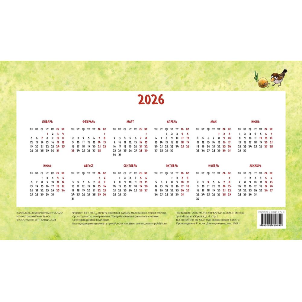 Календарь-домик настольный 2025 Котомечты 200х115мм