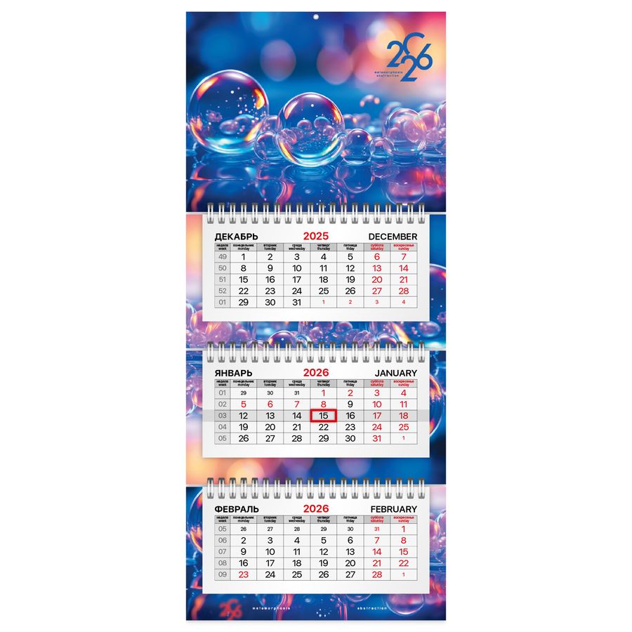 Календарь квартальный 2026 г., 3 блока, 3 гребня, бегунок, офсет, BRAUBERG EXTRA MINI, "Абстракция"