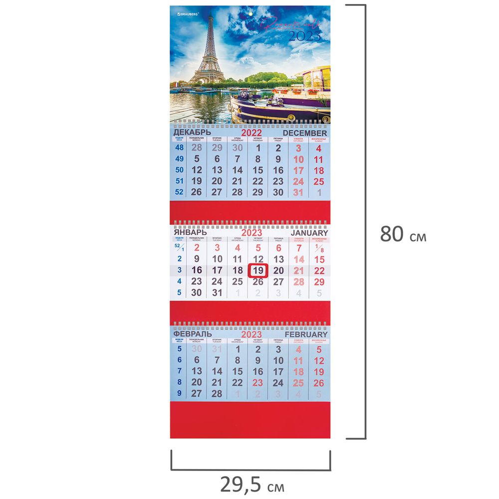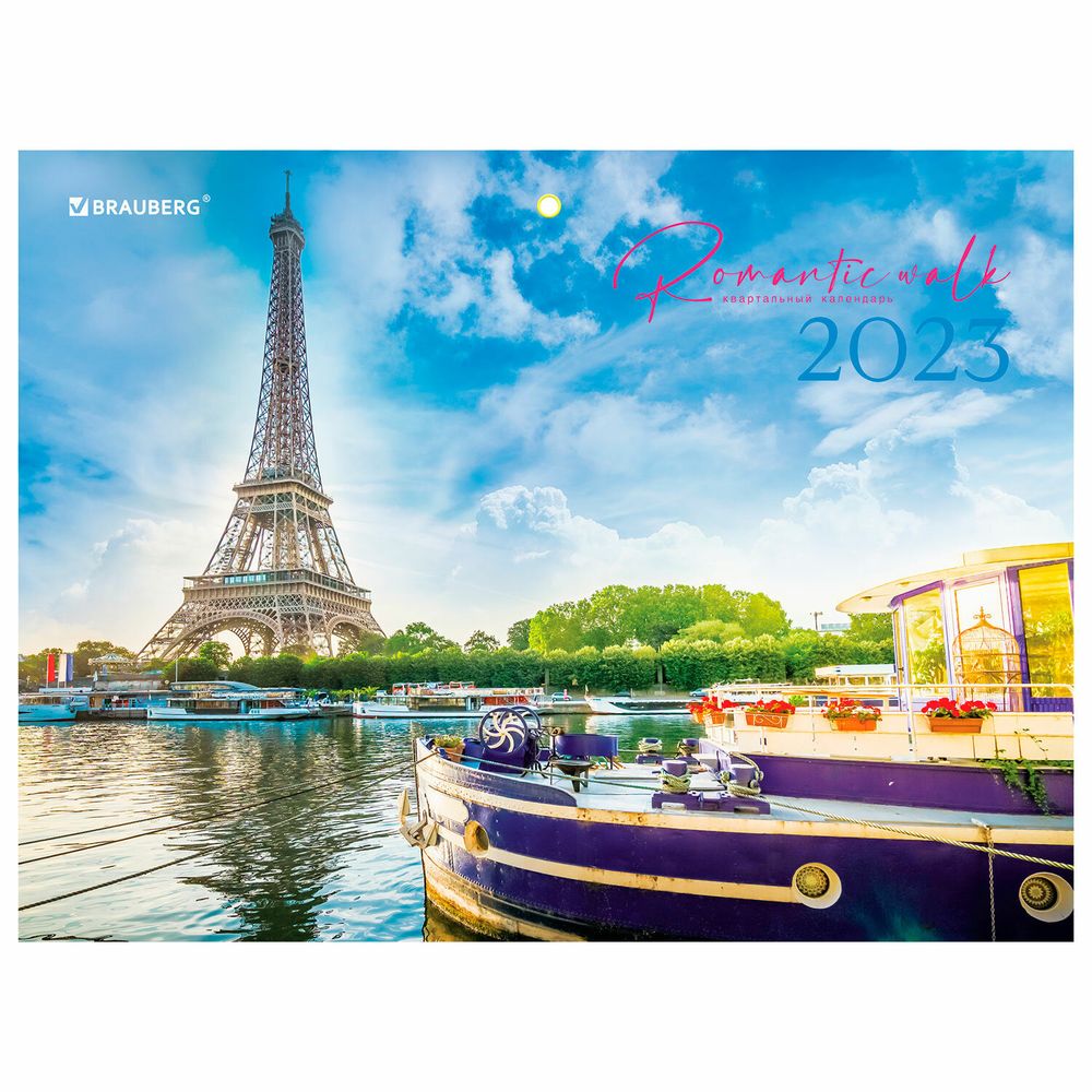 Календарь квартальный на 2023 г., 3 блока, 3 гребня, с бегунком, офсет, "PARIS", BRAUBERG