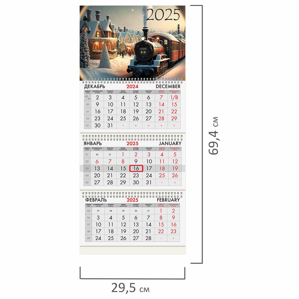 Календарь квартальный на 2025 г., 3 блока, 3 гребня, с бегунком, офсет, BRAUBERG, "Паровозик"