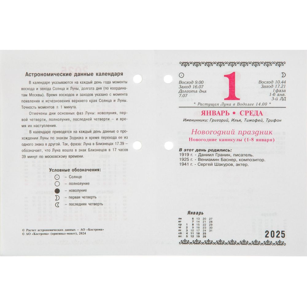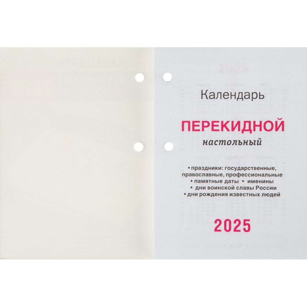 Календарь настольный перекидной 2025 год Офис (10х14 см). Настольный перекидной календарь на 2025 год, 2-красочный, на офсетной бумаге, формат 100х140 мм, в индивидуальной упаковке (термопленка ПВХ). Количество страниц: 320. Расстояние от края до верхнего прокола - 18 мм. Расстояние между проколами - 40 мм. Блок: бумага офсетная плотностью 60 г/м2. Печать блока в две краски. Обложка: бумага мелованная плотностью 170 г/м2. Печать обложки в четыре краски. В календаре отмечены государственные, профессиональные, православные праздники, именины, знаменательные даты.