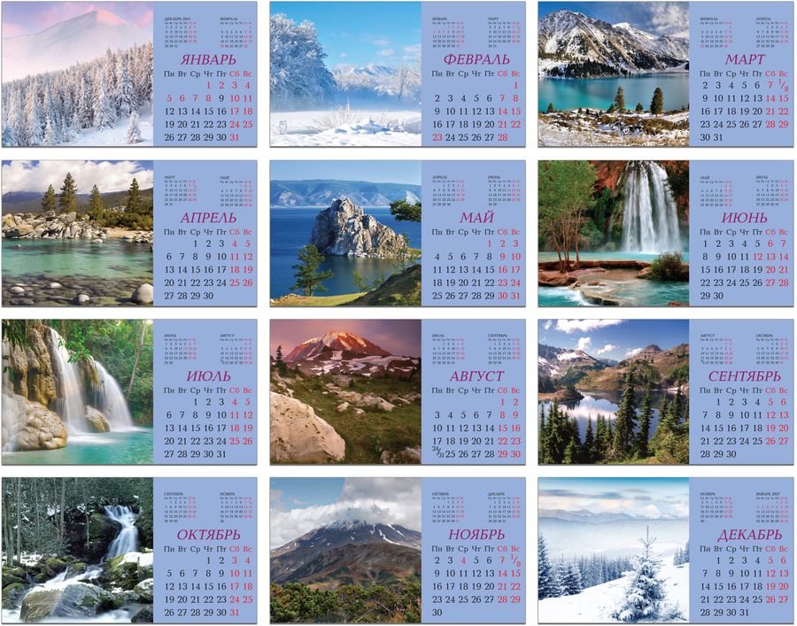 Календарь настольный "домик" на 2026 год, "Горы и водопады"