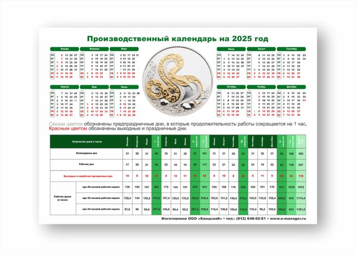 Табель-календарь для расчета рабочего времени на 2025 год напечатан на матовой бумаге плотностью 300 гр/м. Календарь оформлен ярким и стильным постером и легко читаемой сеткой рабочего времени. Формат A4.