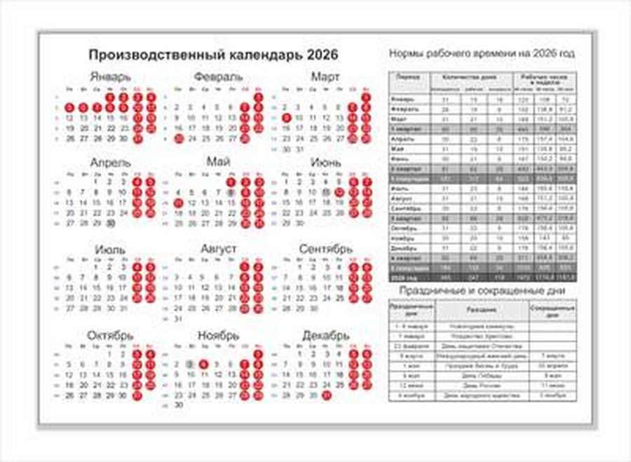 Табель-календарь для расчета рабочего времени на 2026 год напечатан на матовой бумаге плотностью 300 гр/м. Календарь оформлен ярким и стильным постером и легко читаемой сеткой рабочего времени. Формат A5.