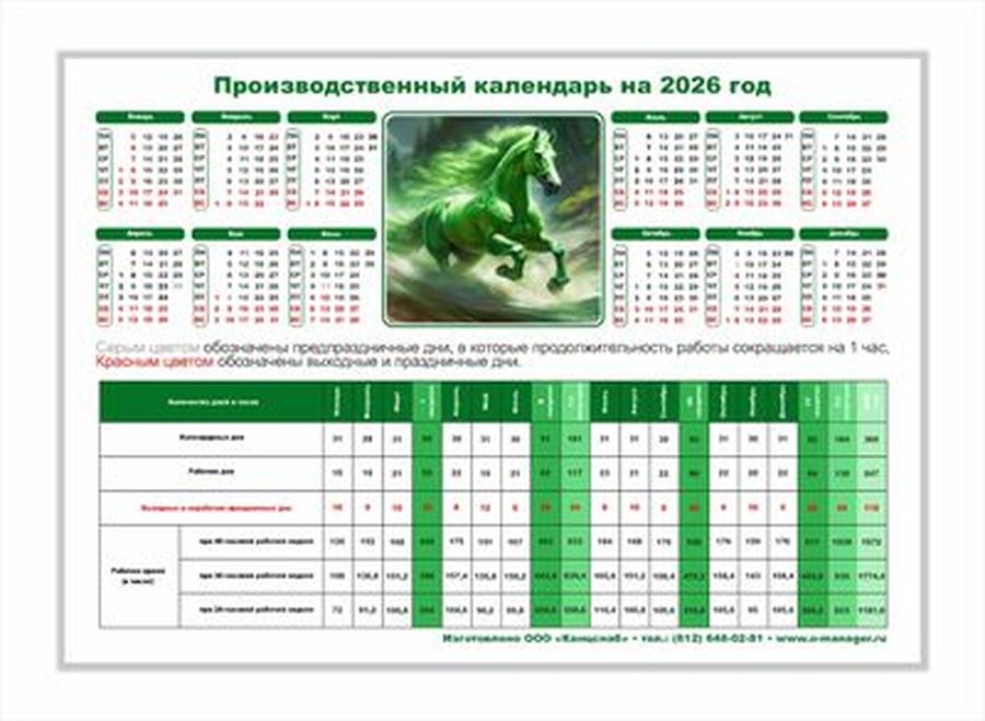 Табель-календарь для расчета рабочего времени на 2026 год напечатан на матовой бумаге плотностью 300 гр/м. Календарь оформлен ярким и стильным постером и легко читаемой сеткой рабочего времени. Формат A5.