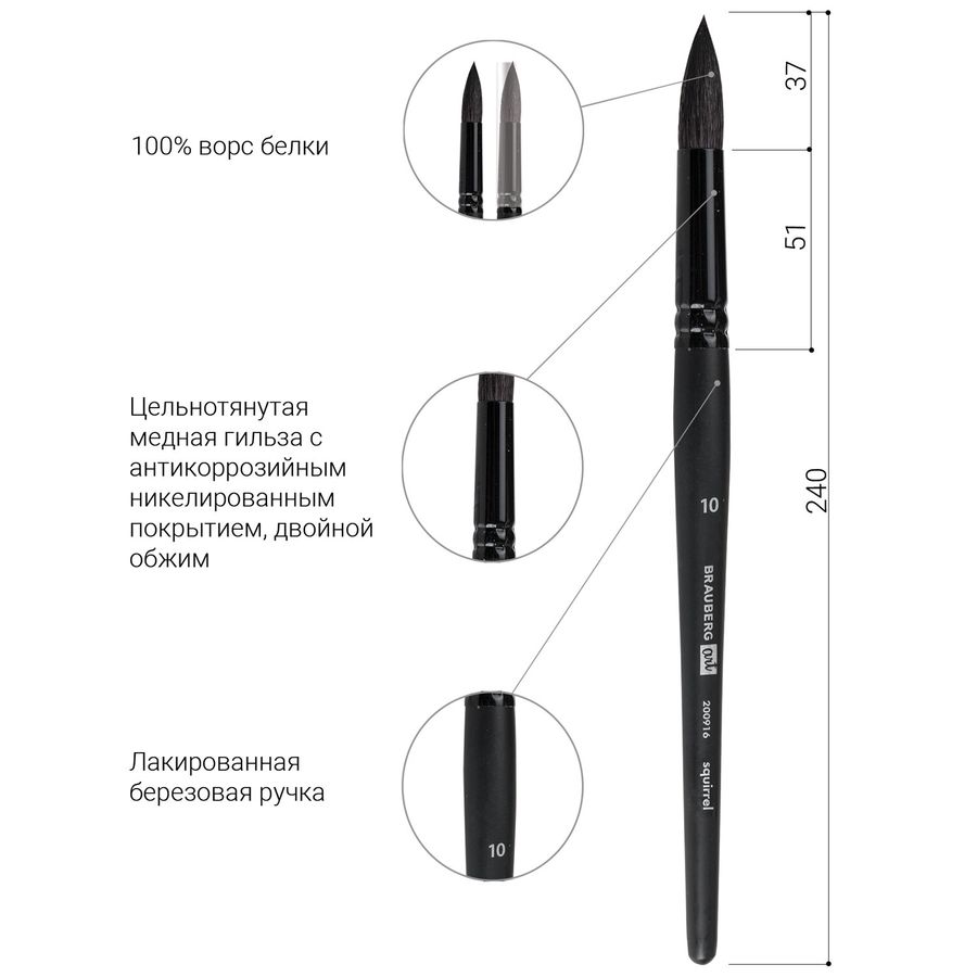 Кисть художественная проф. BRAUBERG ART CLASSIC, белка, круглая, № 10