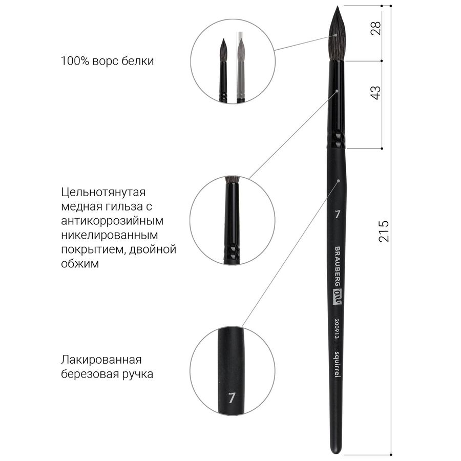 Кисть художественная проф. BRAUBERG ART CLASSIC, белка, круглая, № 7