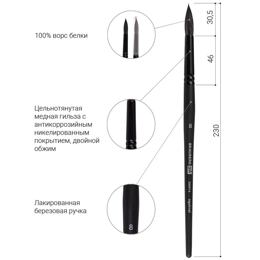 Кисть художественная проф. BRAUBERG ART CLASSIC, белка, круглая, № 8