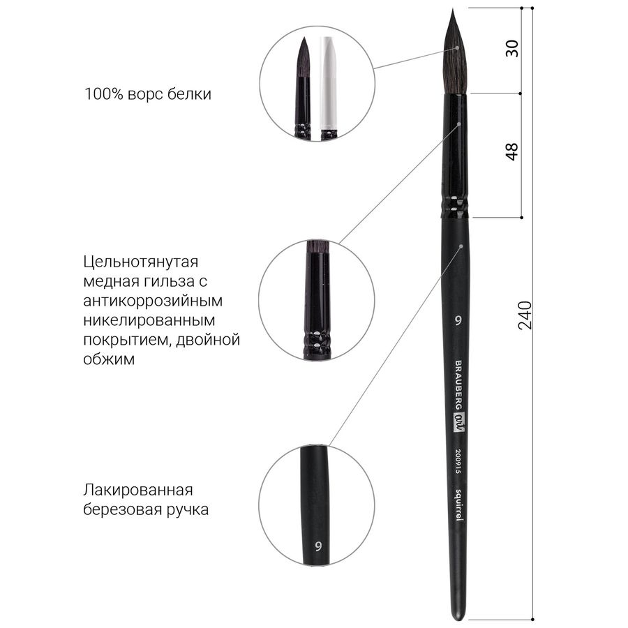Кисть художественная проф. BRAUBERG ART CLASSIC, белка, круглая, № 9
