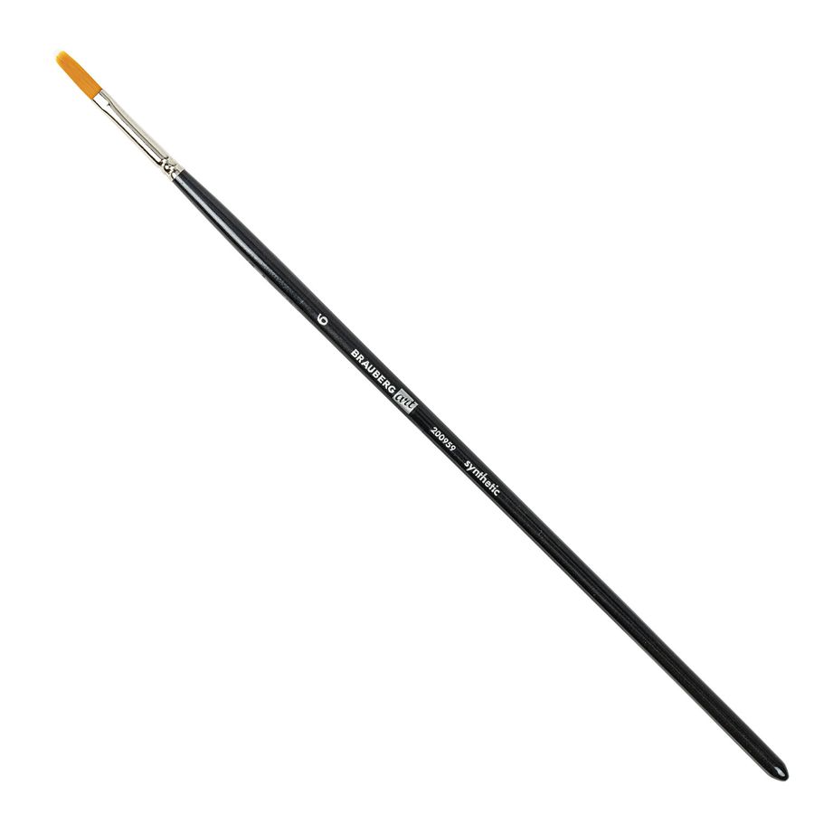 Кисть BRAUBERG прекрасно подходит для работы жидкими красками. Не теряет жесткость при намокании и одновременно позволяет удерживать максимальное количество краски в пучке. Предназначена для растушевки краски, смешивания и смягчения контрастов и фактуры. Кисти изготовлены с применением высококачественной синтетики. Отличаются универсальностью в использовании, обусловленной упругостью ворса и прекрасными впитывающими свойствами пучка. Длинная ручка из древесины покрыта лаком, что защищает ее от воздействия красок и влаги. Форма пучка - круглая № 1, 3; плоская № 4, 10; cкошенная - № 8; овальная № 6. Номер кисти соответствует реальной ширине пучка в миллиметрах. Упаковка - пакет с европодвесом и картонной подложкой.Художественные кисти пригодятся как канцтовары школьникам, студентам, участникам мастер-классов, ученикам художественных школ, студий и училищ, живописных мастерских, так как у них представлена широкая гамма размеров и видов. Отлично подойдут для работы дома или пленэре. С их помощью можно создать даже иллюстрации к сонетам Шекспира. Эти кисти используют любители в качестве хобби и профессионалы, которые стремятся достичь такой же славы как Пикассо (Picasso), Малевич, Шагал, Моне (Claude Monet), Рембрандт (Rembrandt), Дали (Salvador Dali), Энди Уорхол (Andy Warhol), Рублёв, Фрида Кало (Frida Kahlo), Ван Гог (Vincent van Gogh), Тициан ( Tician), Анри Матисс (Henri Matisse) Леонардо да Винчи (Leonardo da Vinci) и другие популярные художники и артисты. Творчество - луч света в серых буднях! Серия: CLASSIC. Номер кисти: круглая № 1, 3; плоская № 4, 10; cкошенная - № 8; овальная № 6. Количество в наборе: 6 шт.. Ручка: длинная. Материал: жесткая синтетика. Цвет ручки: черный. Упаковка: пакет с европодвесом и картонной подложкой.