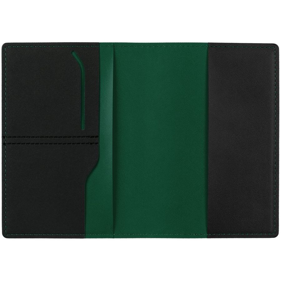 Обложка для паспорта Multimo черная с зеленым