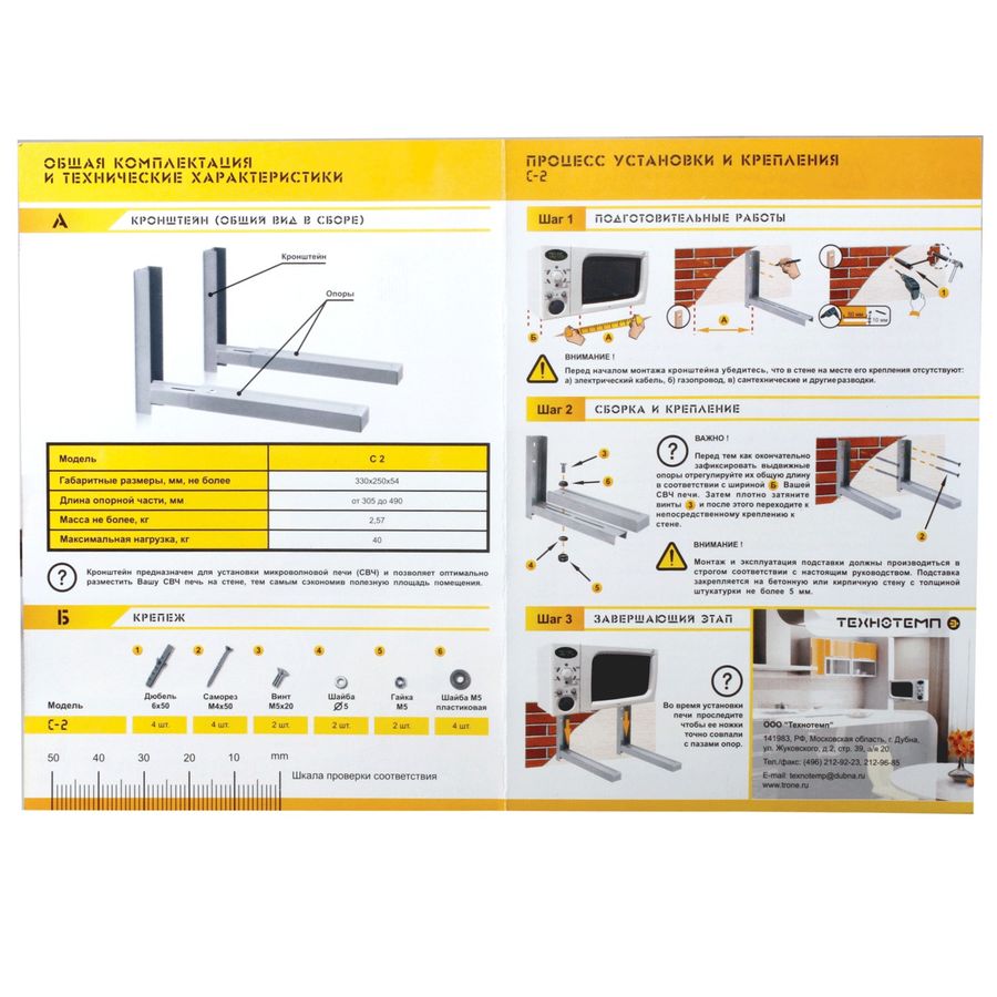 Универсальный кронштейн для СВЧ-печей с регулируемой опорной частью (1 степень свободы) для надежной фиксации техники. Монтажный набор входит в комплект. Кронштейн для микроволновых печей с регулируемой опорной частью (одна степень свободы) обеспечивает надежную фиксацию устройства. В комплект входит монтажный набор. Максимальная нагрузка составляет 40 кг. Длина опорной части варьируется от 300 до 500 мм. В комплект также включены крепежные элементы, подходящие для бетонных или кирпичных стен.Производитель оставляет за собой право без предварительного уведомления вносить изменения в технические характеристики, комплектацию и конструкцию, не ухудшающие эксплуатационные характеристики изделия. Назначение: настенный. Максимальная нагрузка: 40 кг. Регулировка расстояния до стены: да. Минимальное расстояние от стены: 30 см. Максимальное расстояние от стены: 50 см. Серия: С-2. Цвет: белый. Высота: 25 см. Ширина: 5.4 см. Глубина: 50 см. Вес: 2.2 кг