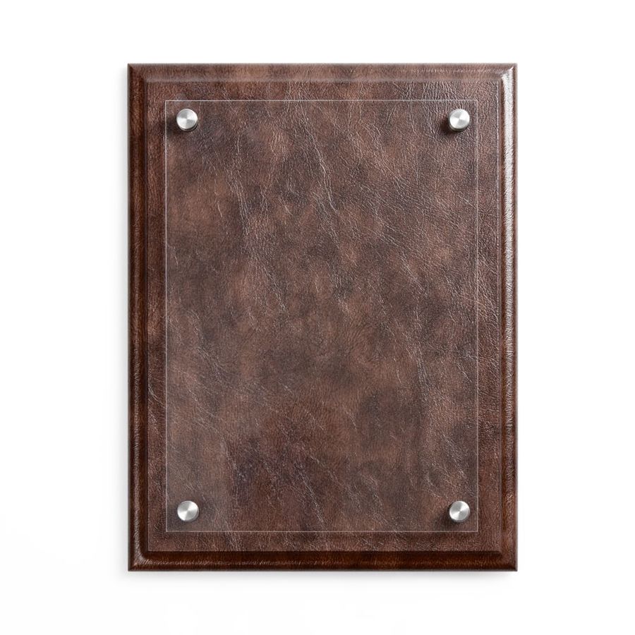 Классическая плакетка с имитирующей кожаную текстуру основой и акриловой вставкой — универсальный инструмент, чтобы рассказать о достижениях команды. Материал: акрил, МДФ Размеры: 23х1,8х30 см