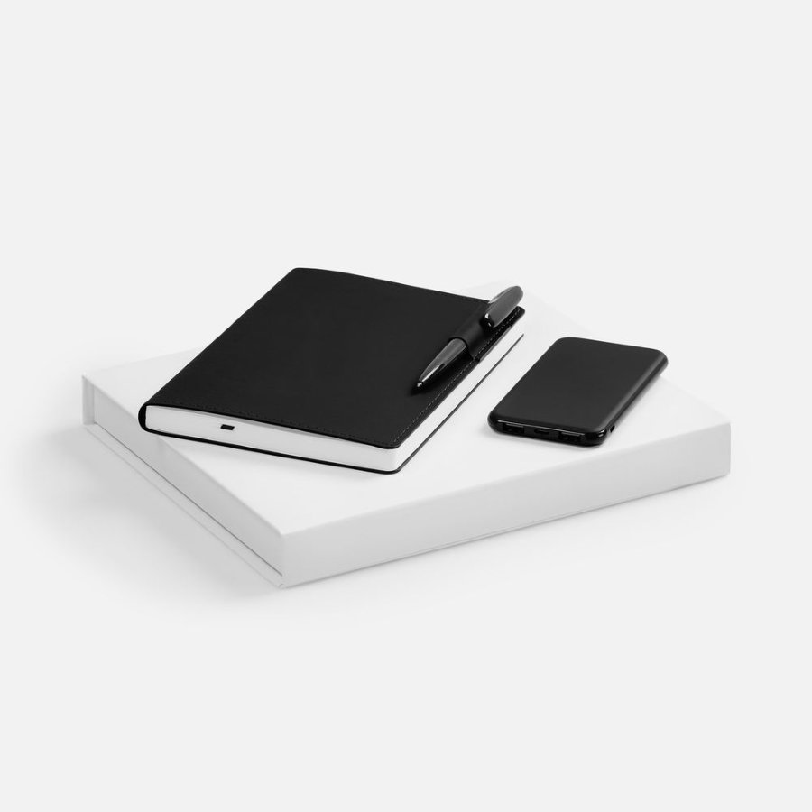 Tact Energy — набор для активных пользователей смартфонов и небольших планшетов, которые ценят свое время и порядок. Внешний аккумулятор позволит всегда оставаться на связи, а бессменная офисная классика — ежедневник и ручка — помогут направить энергию в правильное русло! Материал: искусственная кожа, переплетный картон, пластик Размеры: 28х23,5х3,5 см Цвет: черный