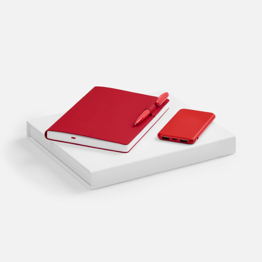 Tact Energy — набор для активных пользователей смартфонов и небольших планшетов, которые ценят свое время и порядок. Внешний аккумулятор позволит всегда оставаться на связи, а бессменная офисная классика — ежедневник и ручка — помогут направить энергию в правильное русло! Материал: искусственная кожа, переплетный картон, пластик Размеры: 28х23,5х3,5 см Цвет: красный