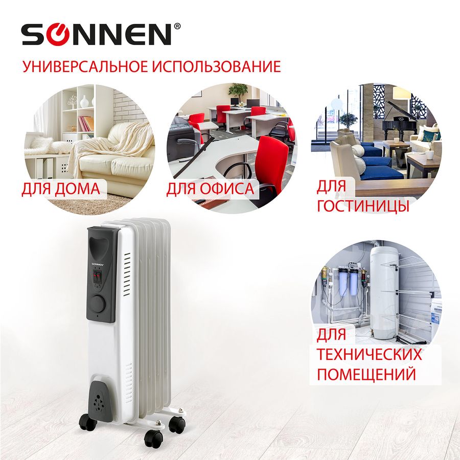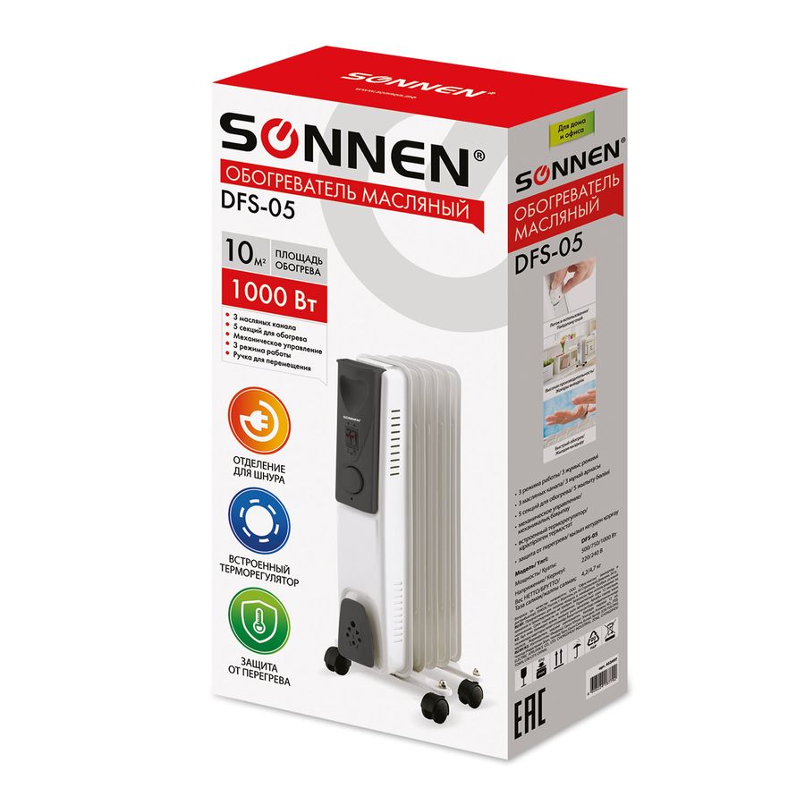 Обогреватель масляный SONNEN DFS-05, 1000 Вт, 5 секций, белый