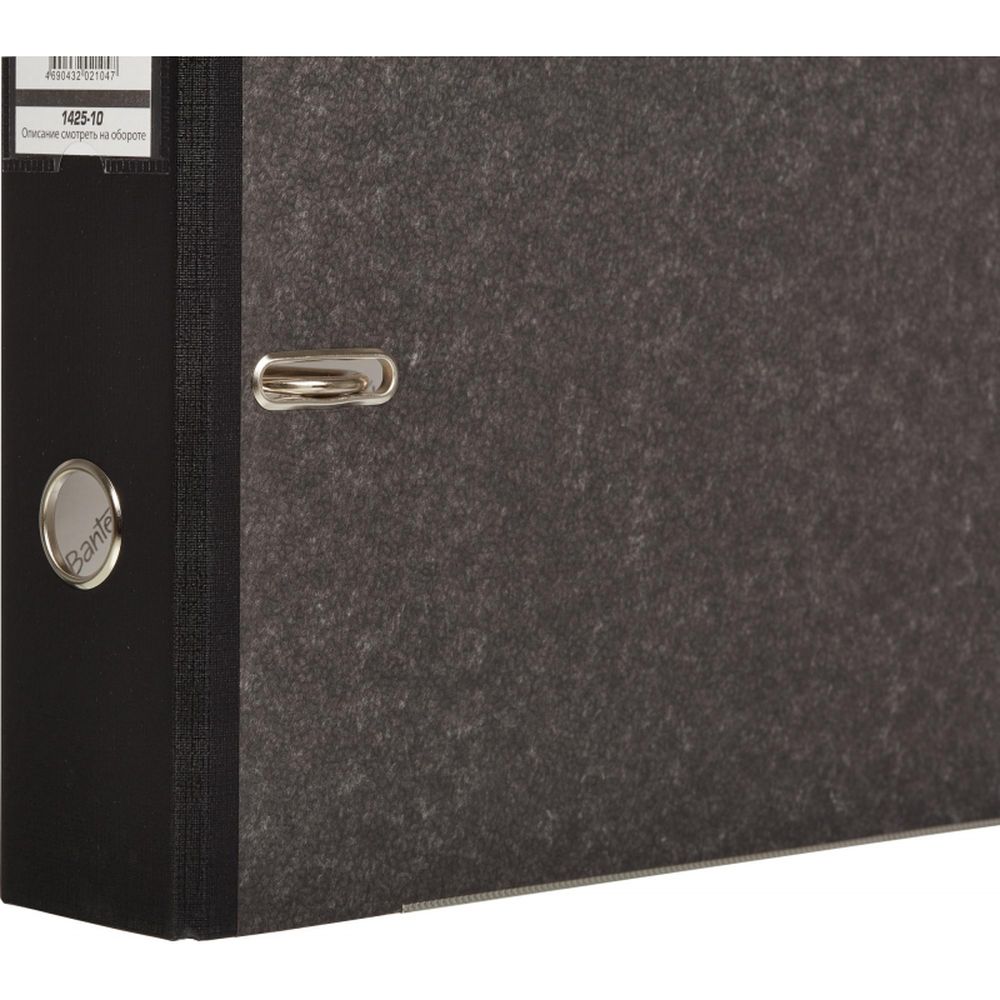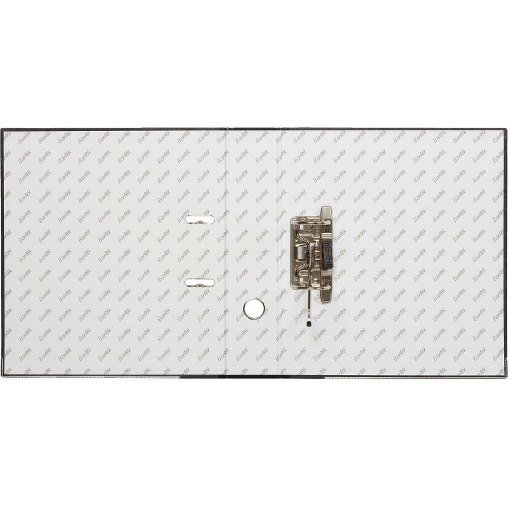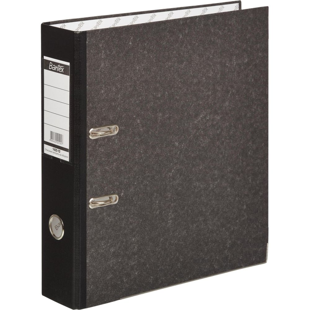Папка-регистратор с арочным механизмом Bantex формата А4 изготовлена из плотного картона, покрытого фактурной бумагой «под мрамор». Корешок черного цвета, ширина — 75 мм. Оснащена металлическим арочным механизмом. Специальные прорези на крышке не дают папке открываться при большом количестве вложенных документов. На корешке есть кольцо для удобного захвата и прозрачный карман со сменной маркировочной этикеткой. Папка-регистратор Bantex вмещает до 480 листов стандартной плотности.