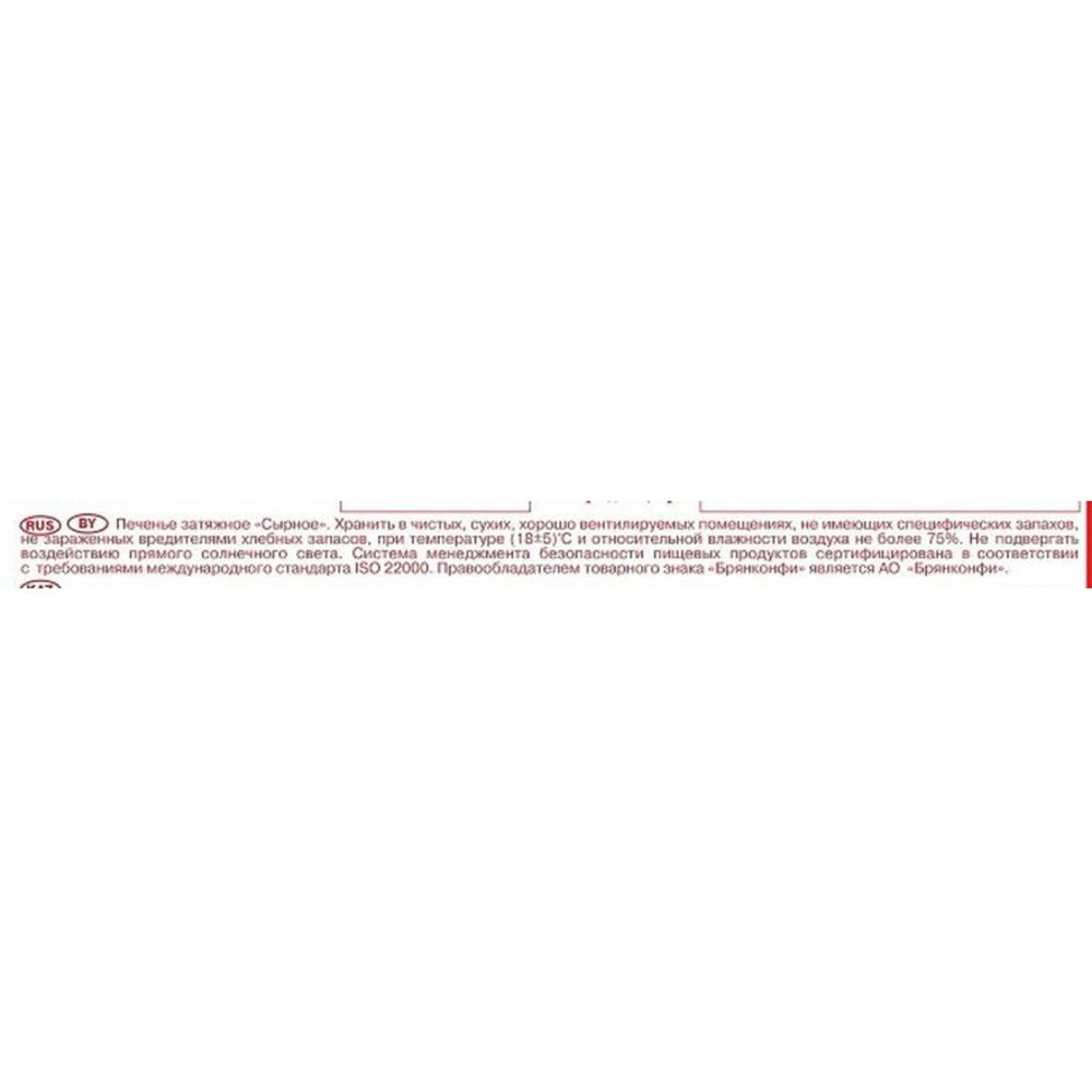 Тонкое печенье с добавлением сыра. Состав: мука пшеничная, вода питьевая, жир кондитерский (рафинированные дезодорированные растительные масла в натуральном и модифицированном виде, антиокислитель концентрат смеси токоферолов), сахар, инвертный сироп (сахар, регуляторы кислотности: гидрокарбонат натрия (сода пищевая), лимонная кислота), крахмал кукурузный, комплексная пищевая добавка Сырная (сыворотка молочная, мальтодекстрин, сырный порошок, соль, ароматизатор), сыворотка молочная сухая, меланж яичный жидкий, соль, разрыхлители: карбонат аммония, гидрокарбонат натрия (сода пищевая), эмульгатор лецитин соевый, ароматизатор Сыр, антиокислитель пиросульфит натрия. Пищевая ценность: белки - 8.0 г, жиры - 16 г, углеводы - 66 г. Энергетическая ценность: 440 ккал. Хранить в чистых, сухих, хорошо вентилируемых помещениях, не имеющих специфических запахов, не зараженных вредителями хлебных запасов, при температуре (18+5)°С и относительной важности воздуха не более 75%. Срок годности: 6 месяцев. Масса нетто: 200 г. Тип упаковки: мягкая. Страна производства: Россия. ГОСТ 24901-2014