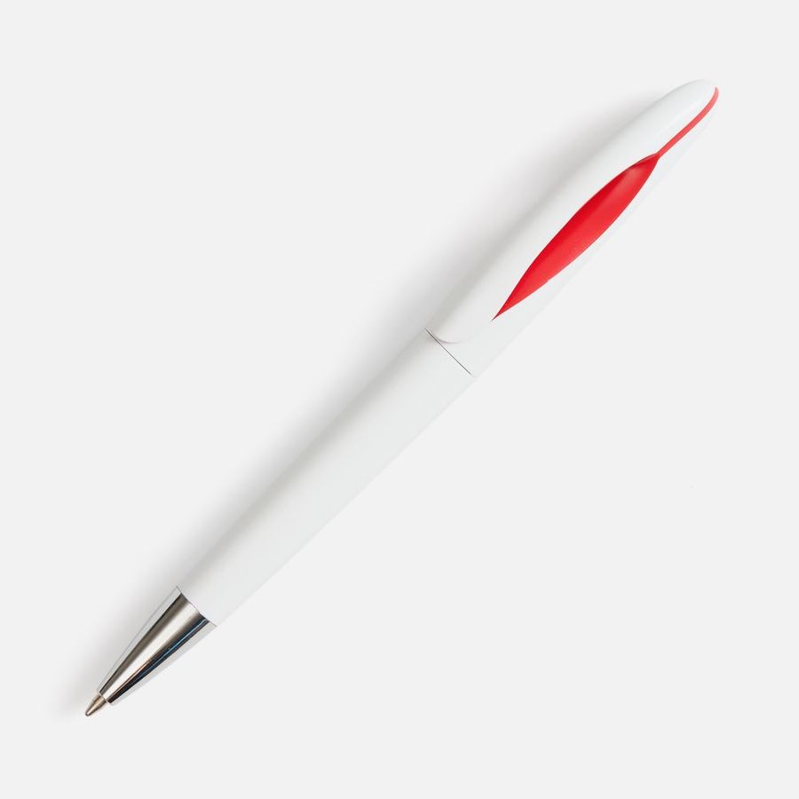 Шариковая ручка приятных округлых форм с белым глянцевым корпусом и цветовым акцентом. Материал: пластик Размеры: 14,5х1,2 см