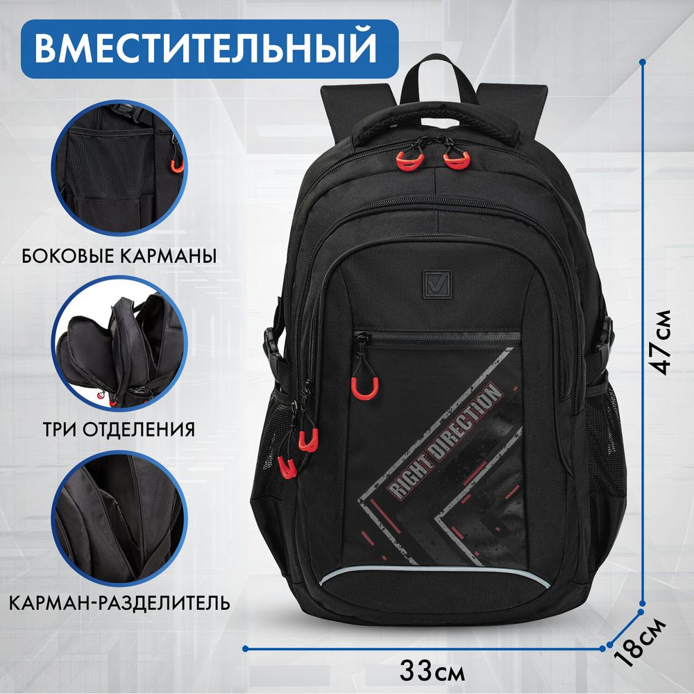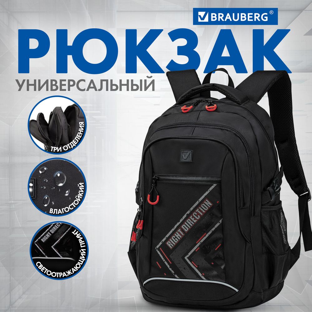 Рюкзак BRAUBERG CONTENT универсальный, 3 отделения, светоотражающий принт, "Direction", 47х33х18 см