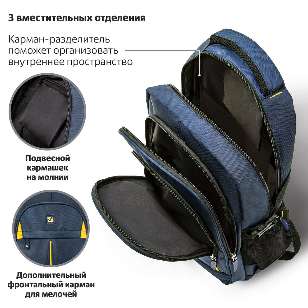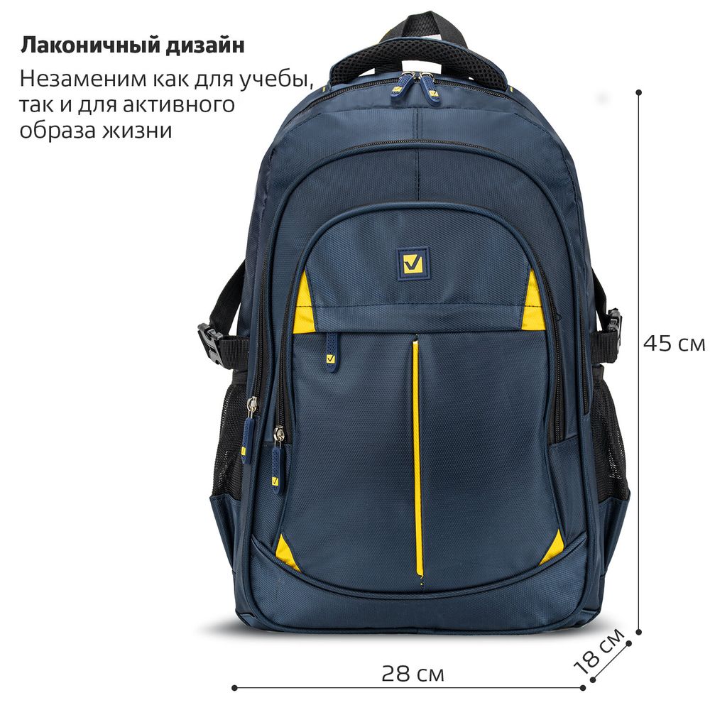 Рюкзак BRAUBERG TITANIUM универсальный, 3 отделения, синий, желтые вставки, 45х28х18 см