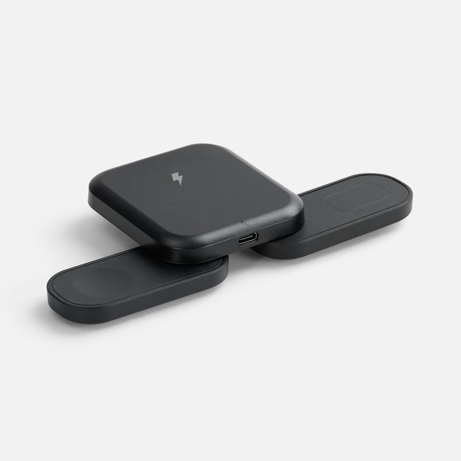 Trilogic — компактное устройство беспроводной зарядки для самых мобильных и современных пользователей. Площадки для зарядки наушников и часов легко складываются и не занимают много места, когда не используются: станцию удобно использовать не только в офисе, но и при разъездах. Зарядная станция совместима со всеми смартфонами, поддерживающими технологию беспроводной зарядки Qi. Также предусмотрено место для зарядки часов Apple Watch и наушников. Зарядка начнется автоматически при размещении устройств на индукционной площадке. Минималистичный компактный дизайн делает устройство не только полезным, но и стильным аксессуаром. Материал: пластик Размеры: 16,5x8,2x2 см, в сложении: 6,8x7,5x2 см; упаковка: 10,4x13,4x4 см